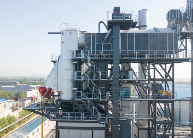 同时该设备配备超大容量搅拌缸7500型,搅拌缸放置在再生主机上方,有效的解决了RAP粘料的技术难题。并且该设备配备了热交换器对尾气热能进行回收利用,提高了能效。