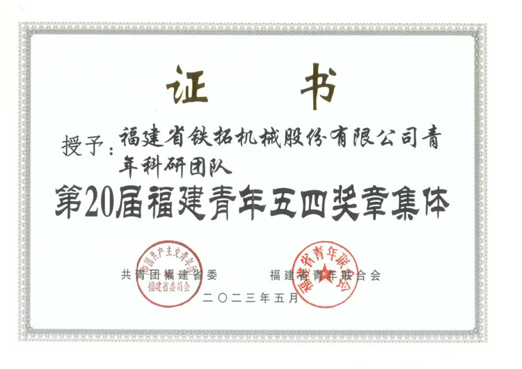喜讯!铁拓机械青年科研团队受表彰为“第20届福建青年五四奖章集体”
