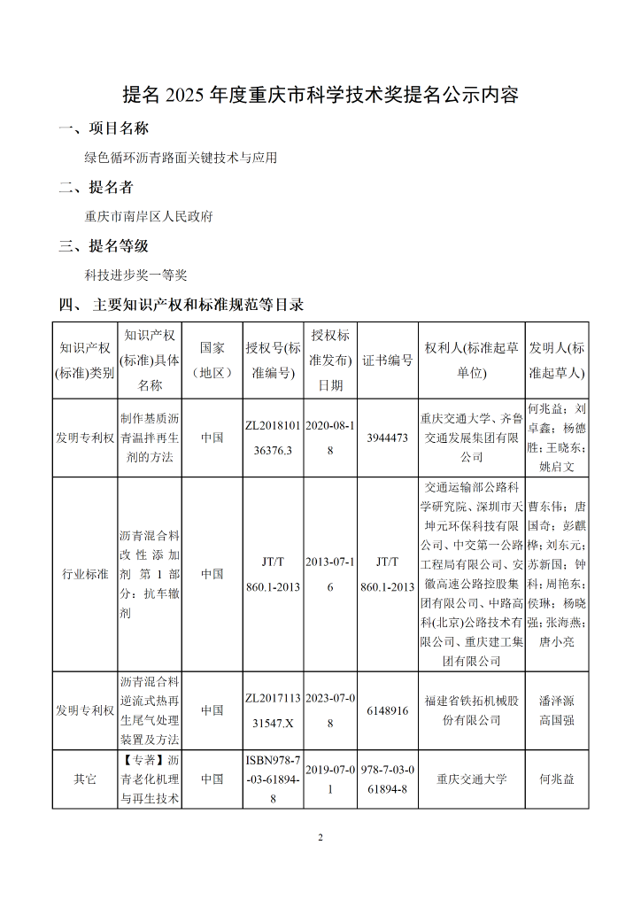 返回列表 03 2026-02 2025年度重庆市科学技术奖项目《绿色循环沥青路面关键技术与应用》的公示 2026-02-03 访问量:408 访问类型:公司新闻 字号 A- A A+ 上一条 铁拓机械尾牙家宴温情绽放:家人共聚话奋斗,同心携手赴新程 2026.02.07 下一条 铁拓机械“2026年全国沥青搅拌设备操作手精英特训营”培训活动圆满落幕 2026.01.26